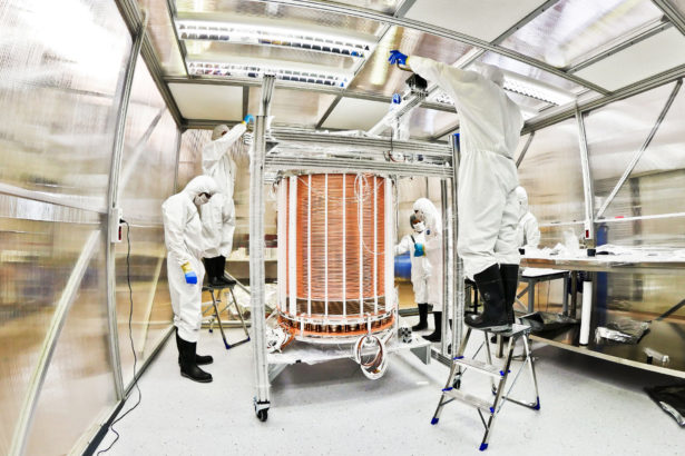 Το πείραμα XENON1T, στο υπόγειο Εθνικό Εργαστήριο του Gran Sasso, στην Ιταλία, ερευνά για φωτεινές αναλαμπές που προκαλούνται από σωμάτια σκοτεινής ύλης που αντιδρούν με δυο τόνους υγρό ξένο. Το πείραμα σχεδιάστηκε για να εντοπίσει έναν υποθετικό τύπο σκοτεινής ύλης που αποκαλείται ασθενώς αλληλεπιδρών μαζικό σωμάτιο (WIMP), όμως οι ερευνητές έχουν αρχίσει να κοσκινίζουν τα δεδομένα για άλλες δυνατές μορφές. Με επανάληψη της ανάλυσης των αποτελεσμάτων από το 2017 και 2018, η ομάδα του (πειράματος) XENON1T έχει στενέψει τους περιορισμούς στις ιδιότητες των WIMPs και άλλων υποψηφίων για τη σκοτεινή ύλη. Παρόλο που δεν είναι σε θέση να αναγγείλουν κάποια ανίχνευση, οι ερευνητές απέκλεισαν υποψήφια σωμάτια με ένα εύρος παραμέτρων, συμπεριλαμβανομένων ορισμένων υποθετικών – όμοιων με αξιόνια – σωμάτιων και σκοτεινών φωτονίων.