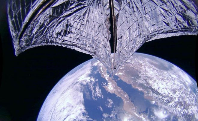 Το LightSail 2 εκτοξεύθηκε στις 25 Ιουνίου 2019. Αυτή η εικόνα δείχνει το πανί μετά την ανάπτυξή του στις 23 Ιουλίου.