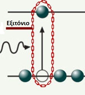 * Σημείωση egno.gr: Το εξιτόνιο (exciton) αποτελεί μια φυσική οντότητα που διαμορφώνεται από ένα δεσμευμένο ζεύγος ηλεκτρονίου-οπής, με ελκτικές δυνάμεις Coulomb. Οι ελκτικές δυνάμεις αναπτύσσονται όταν κατά τη διαδικασία αλληλεπίδρασης φωτός-ύλης ένα φωτόνιο διεγείρει ένα ηλεκτρόνιο και αυτό εγκαταλείπει τη ζώνη σθένους αφήνοντας μια οπή η οποία παραμένει στη ζώνη σθένους, ενώ το ηλεκτρόνιο που διεγέρθηκε παραμένει κοντά στη ζώνη αυτή.