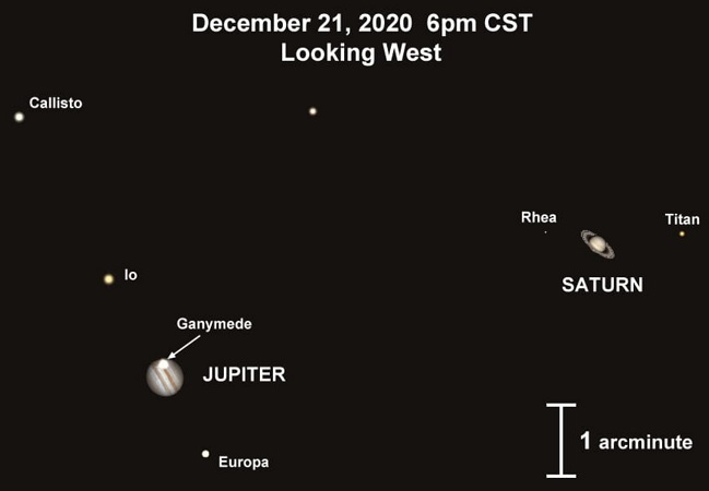 Στις 21 Δεκεμβρίου φέτος, τη μέρα του χειμερινού ηλιοστασίου, οι μεγάλοι πλανήτες Δίας και Κρόνος θα πλησιάσουν τόσο πολύ ο ένας τον άλλο που θα μοιάζουν σαν είναι ένας διπλός πλανήτης. Το θεαματικό αυτό αστρονομικό φαινόμενο είναι η πρώτη φορά που θα συμβεί στο γήινο νυχτερινό ουρανό μετά τον Μεσαίωνα.